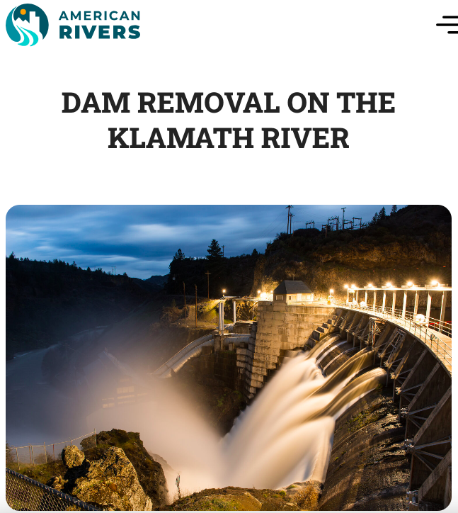 “We are about to witness healing on a major scale. Dam removal is the best way to bring a river back to life. The Klamath is significant not only because it is the biggest dam removal and river restoration effort in history, but because it shows that we can right historic wrongs and make big, bold dreams a reality for our rivers and communities.” Dr. Ann Willis, California Director, American Rivers